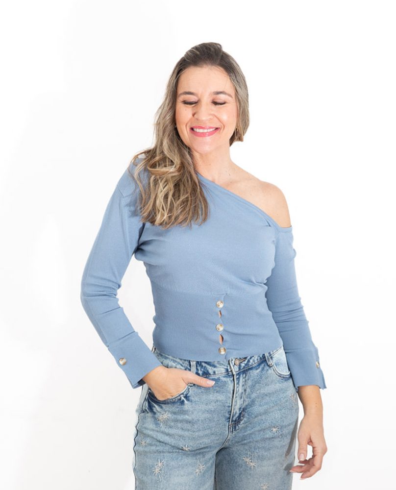 Camiseta Arantxa NUD, camiseta azul con un diseño moderno y favorecedor.
