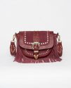Bolso Bandolera Granate Puis, bolso tipo bandolera con flecos y hebilla metalica en frente. Todo en Piel 100%