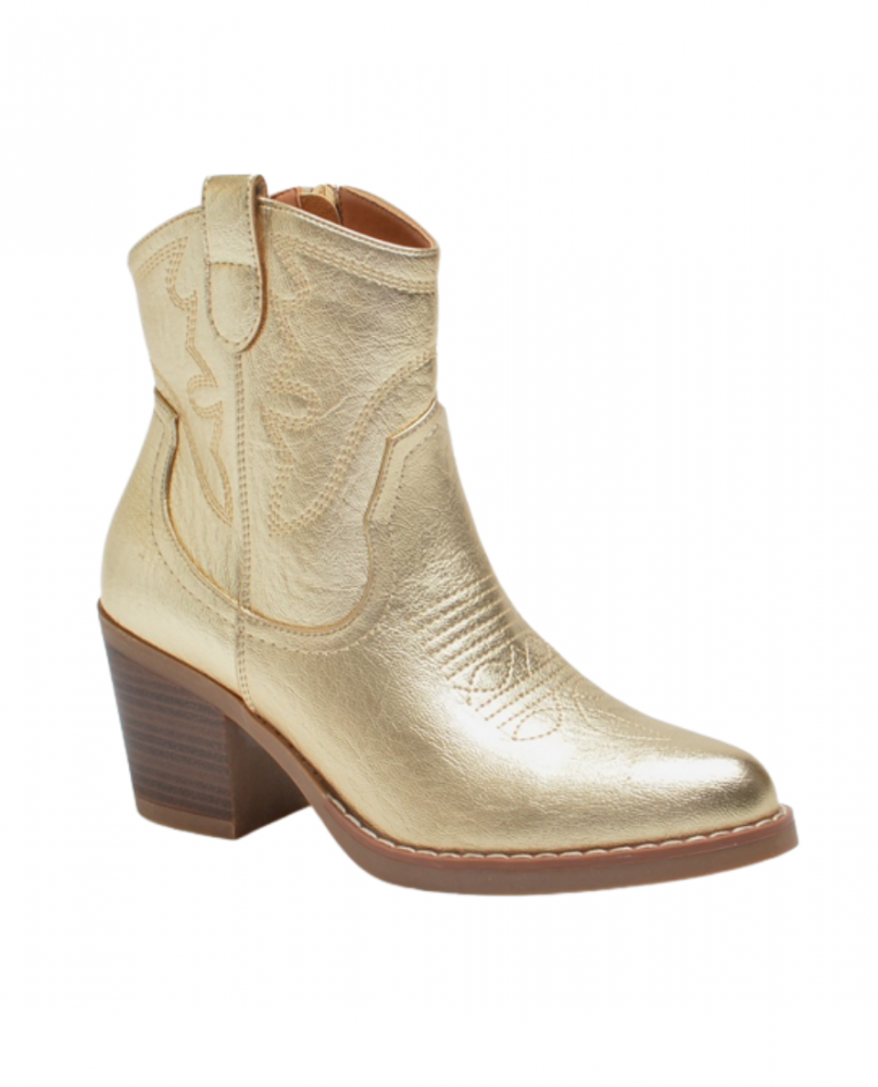 Botin Mac Gold, botin en ecopiel, super cómodo, para caminar sin problema, con cremallera lateral, tacón muy cómodo y un color dorado que está de plena tendencia y será el punto perfecto para terminar todos tus looks favoritos. Talla perfecto, coge tu numero habitual.