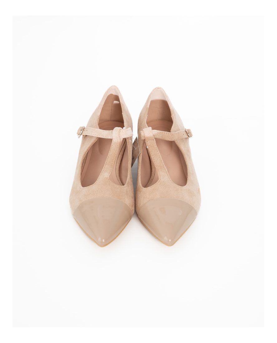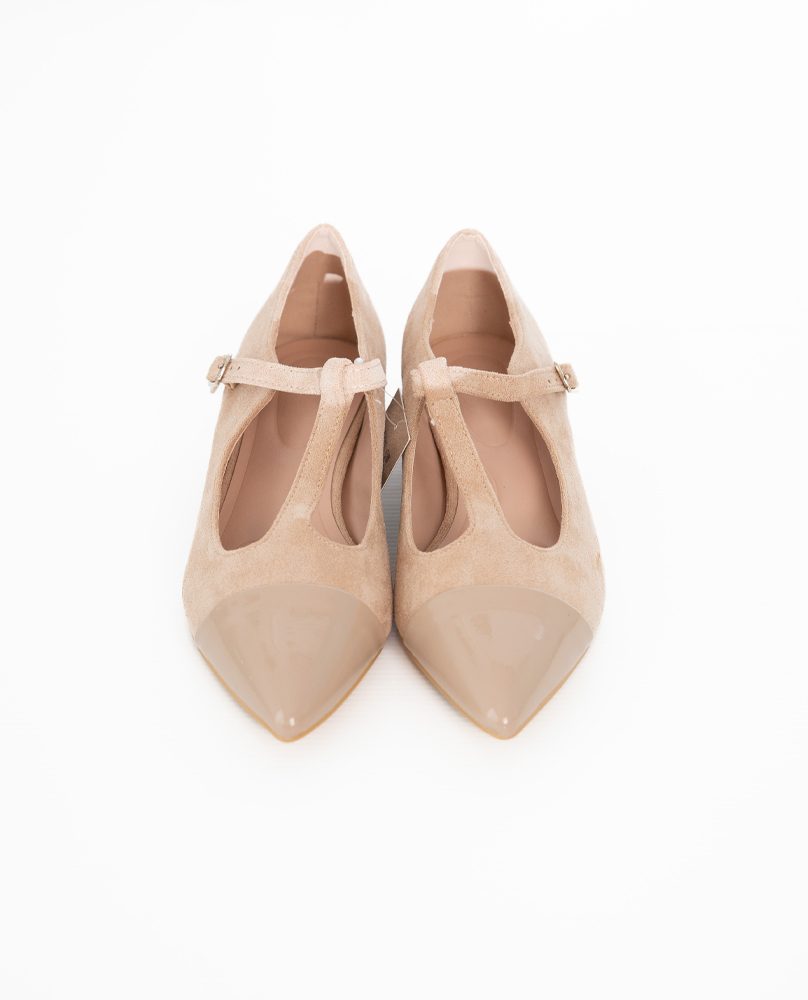 Zapato Plano Emilia, en color beige, tacón de 2 cm y punta brillante. Forro y planta en piel de vacuno. Planta de Microgel para un mayor confort. Fabricado 100% con materiales de primera calidad.