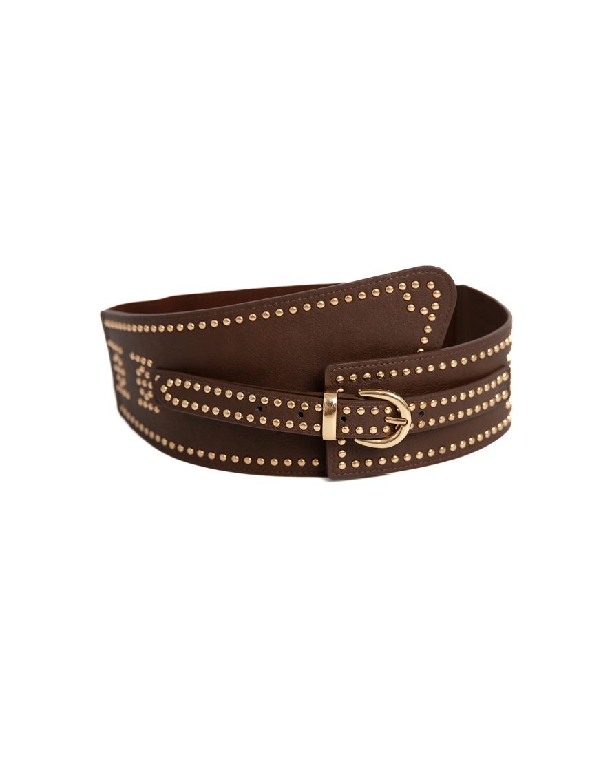 Cinturón Marron Gold, en color marrón chocolate , lleva toda la parte frontal llena de tachuelas doradas y hebilla en dorado, va engomado en toda la parte trasera, con lo cual se adapta genial a todas las siluetas, ademas lleva cierre con distintos agujeros para que cada una se lo adapte a su cintura o cadera.