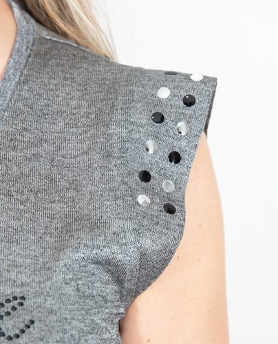 Fijaros en todos los detalles de tachitas plateadas sobre negro ✨, que lo hacen súper especial. También la manga con estructura, que lleva tachitas y le da un rollazo increíble.